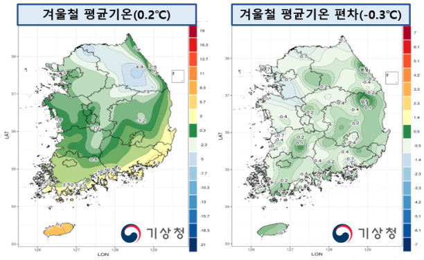 지난 겨울(2022년 12월~2023년 2월)에는 계절 내 기온 변동이 매우 컸다. 고온과 저온이 급격하게 번갈아 가며 평균기온은 0.2℃로 측정되어 평년과 유사(-0.3℃, 평년 대비 25위).