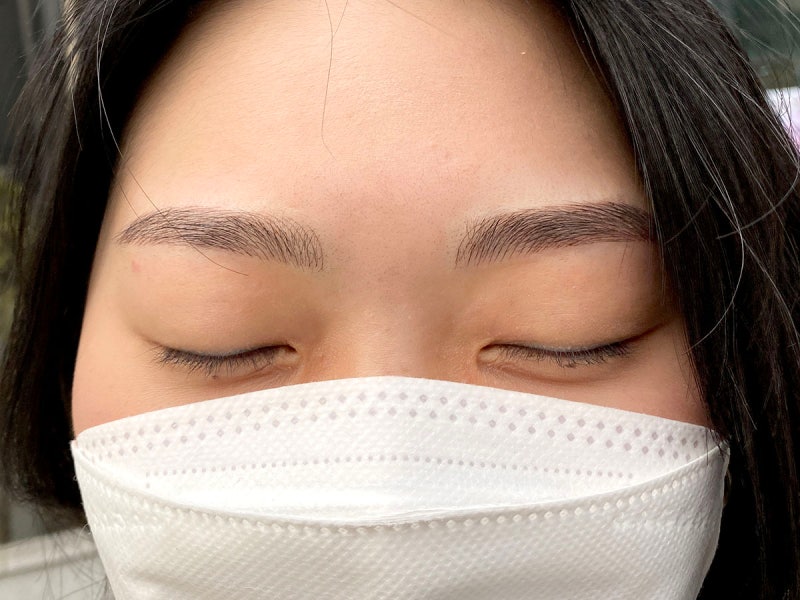일정 시간이 지난 후 마취 연고를 닦아낸 후 디자인을 세심하게 디자인해 주셨고, 원하는 스타일이 있으면 말씀해 주시고, 요청 사항이 있으면 친절히 상담도 해주셨어요.그런가요 ㅋㅋㅋㅋ 화난 눈썹. 원장님이 이쁘게 수선해서 디자인해주셨어요.
