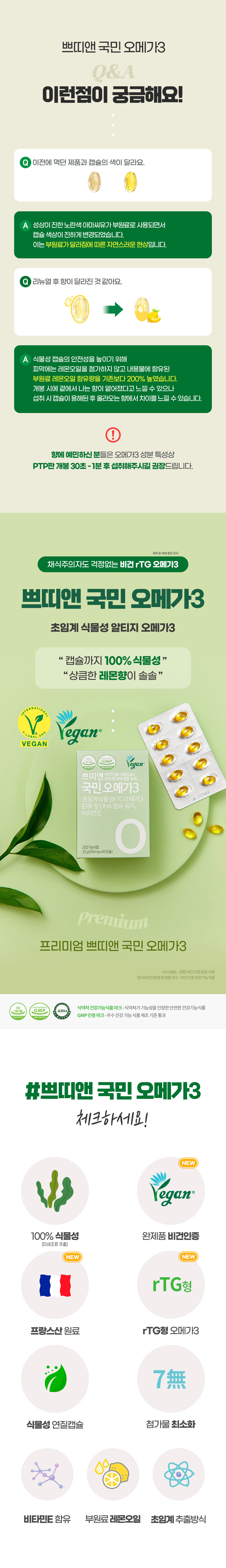 Petit Ann’s 오메가 3 업데이트 초임계 식물 rTG 오메가 3. 쁘띠앤오메가3는 100% 식물성 미세조류추출물 DHA를 함유하고 레몬오일을 보충하여 상큼한 레몬향이 나므로 임산부, 수유부, 어린이도 안심하고 섭취할 수 있습니다. 가지다.