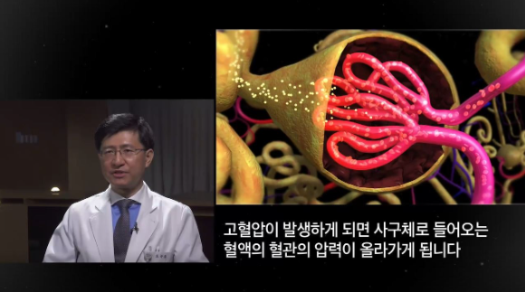 사구체는 우리 몸에 필요한 성분을 남기고 노폐물을 걸러내는 역할을 하는데, 이러한 사구체 혈관이 지속적으로 고혈압과 고혈당에 노출되면 기능이 저하되어 노폐물을 제대로 걸러내지 못하여 결국 신장 투석이 필요합니다.