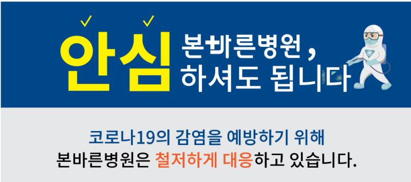 “#올바른 관절, #올바른 척추, #올바른 진료, #올바른 서비스”라는 병원의 슬로건을 기점으로 더 많은 환자분들이 통증 없이 건강한 삶을 누리고, 더 발전할 수 있도록 더욱 발전하는 병원이 되겠습니다. 더 나은 병원이 되기 위해 노력하는 병원, 최선을 다하는 병원의 다짐에 감동입니다.