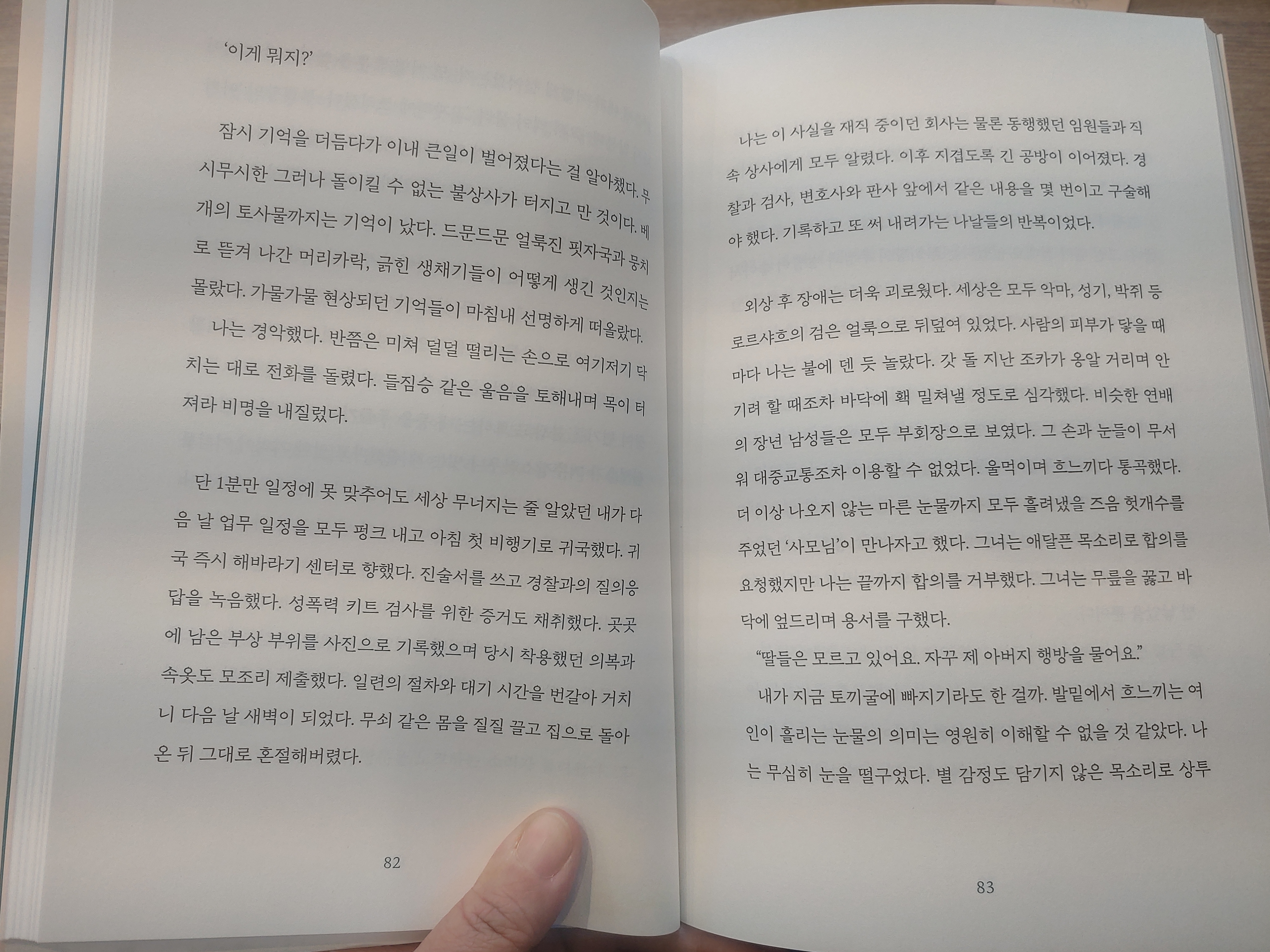 보통 책을 고를 때 책의 제목이나 표지를 본 다음 풀을 보고 훑어보는 편인데, 페이지를 펼쳤을 때 느낌이 오는 책을 고른다.