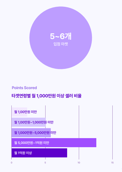 매출 카테고리로 나누면 월매출 5000만원부터 1억원 미만까지 다양 그녀는 평균 12.6으로 섹션에서 가장 높았습니다.
