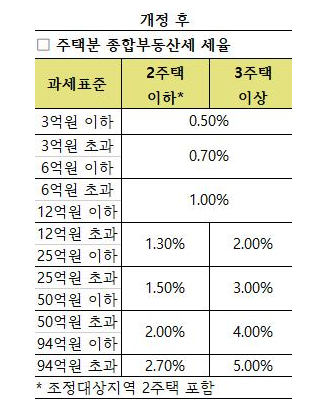 즉, 12억 이하의 과세표준은 주택이 1가구, 2가구, 3가구 이상 있어도 똑같이 타격을 받는다.