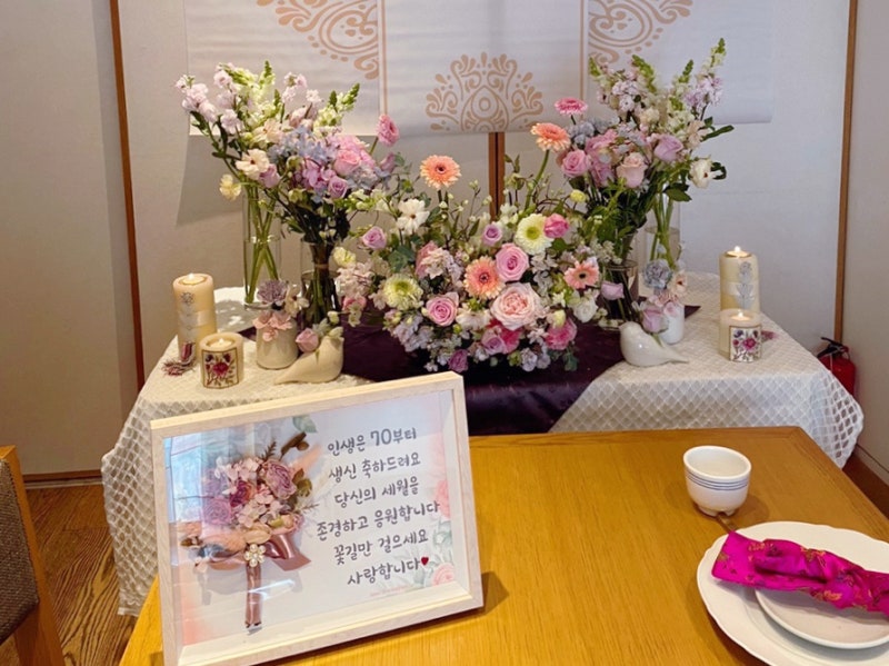 해운대예지 한정식 고희연의 칠순잔치 / 새로운 꽃다발 포토액자! 안녕하세요 여러분~ 오늘은 해운대 한정식으로 유명한 예지에서 부모님 회갑잔치를 했습니다. ~