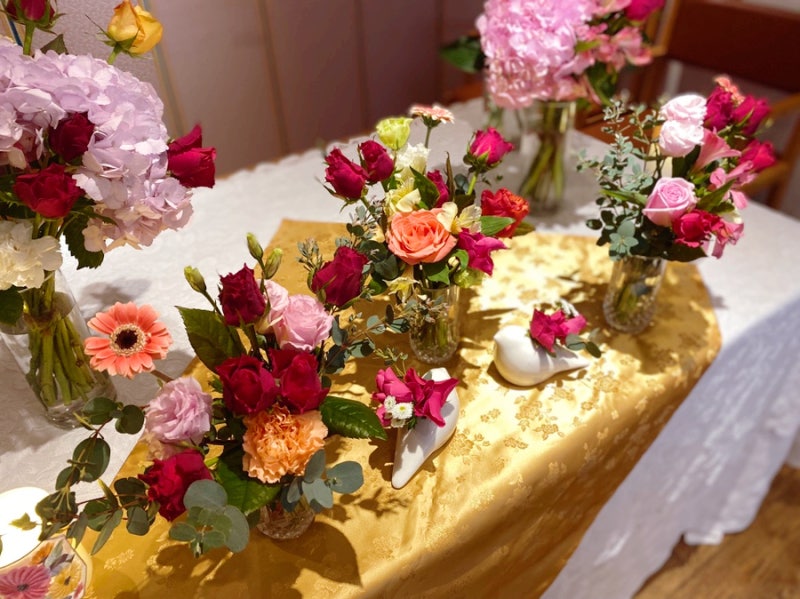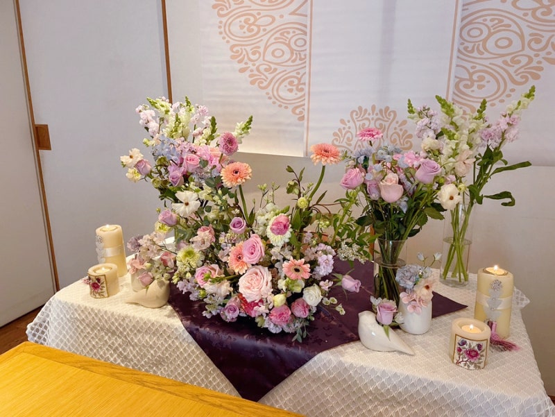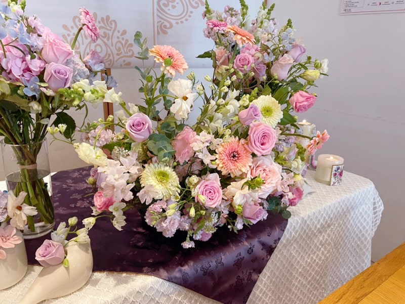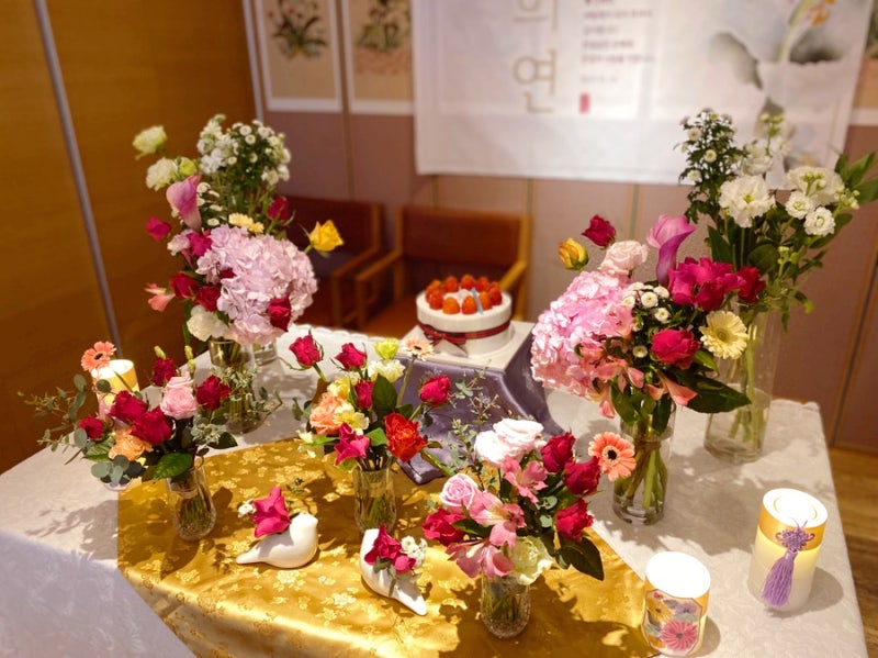 장기보관을 위해 드라이플라워 부케 거치대도 추가해서 테이블 옆에 두었어요. 항상 신선한 이미지와 합리적인 가격, 높은 퀄리티로 정성껏 준비하는 더블루입니다.